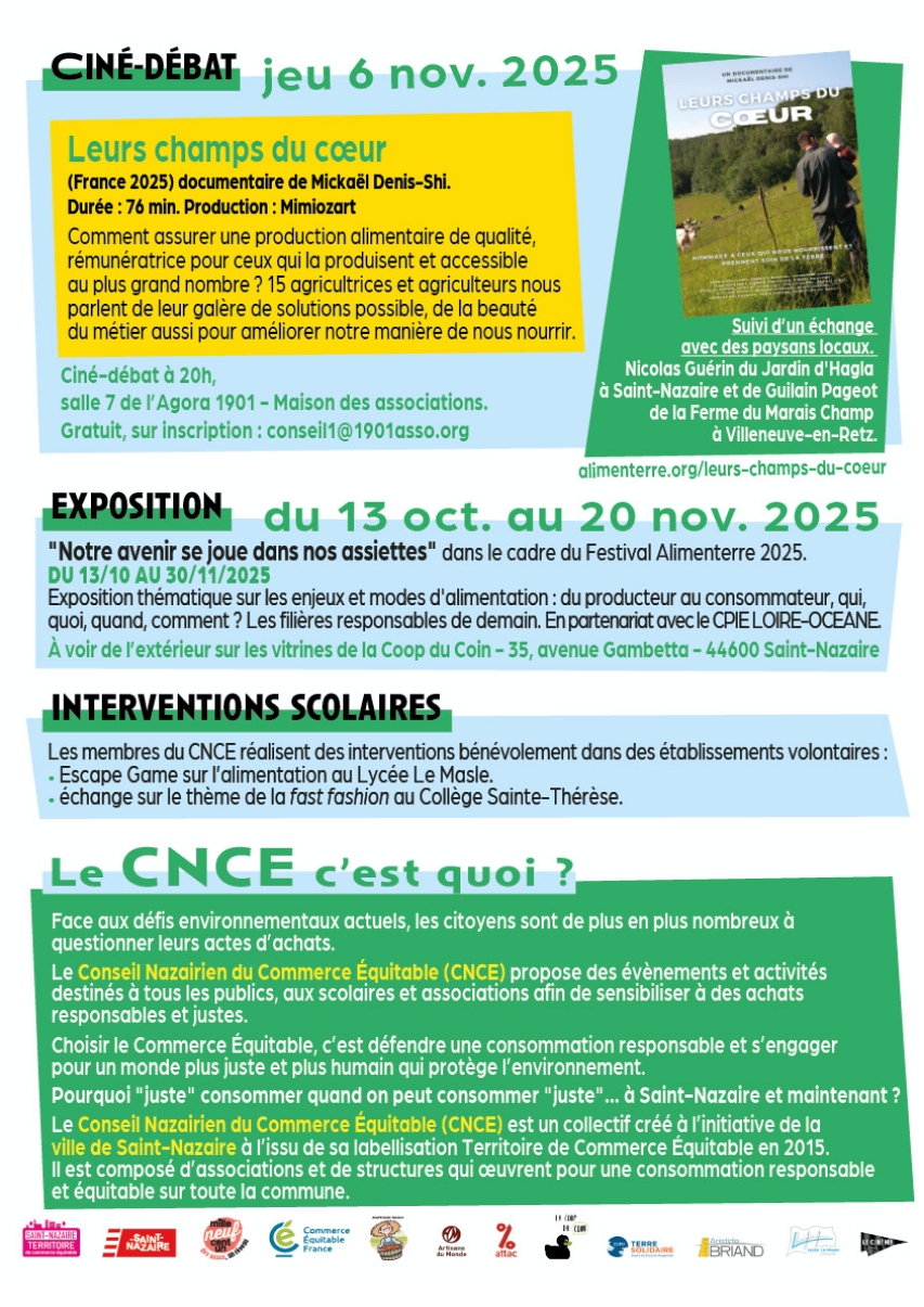 A SAINT-NAZAIRE le programme se déroulera du 13 au 25 Mai en ville et dans les quartiers : des rencontres, portes ouvertes, expositions et interventions en milieu scolaire et quelques bonnes surprises..!. La Coop du Coin participe dans le cadre du Conseil nazairien du commerce équitable. Le programme est ici.